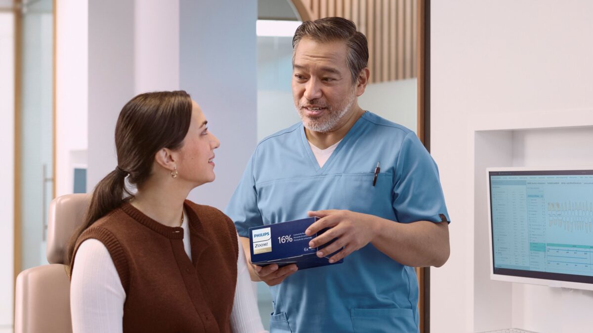 Philips Zoom is een professionele en veilige bleekbehandeling waarmee uw patiënten thuis zelf hun tanden kunnen bleken, onder uw begeleiding als tandarts.